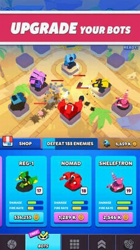 玩家每升级一次炮台,可以获取更多的利益,喜欢的朋友赶快来合并出最强大的机器人吧。