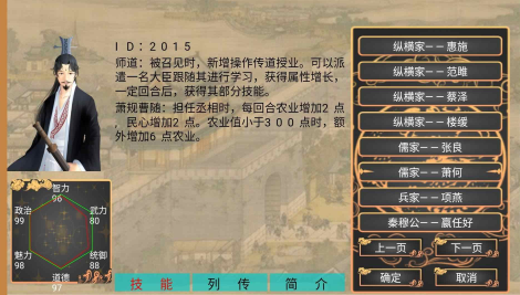 1,随机人物技能:游戏中的人物技能除了某些名人固定的技能外,还包含了所有人(包过普通人物)都可以拥有随机的人物技能。游戏中,技能比属性更重要,需要玩家根据技能安排职位或者 任务 。