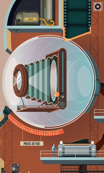 5、传送图像到神经中枢,按压气泵打开盖子,接上胶片并开始放映。