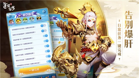 1、不需要氪金,也不需要爆肝,随时随地畅玩体验,一键完成日常任务。