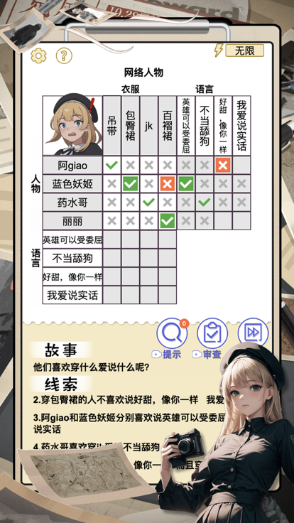 6、根据线索推导出真相,成为真正的大侦探,爱好推理解谜游戏的你一起来试试。