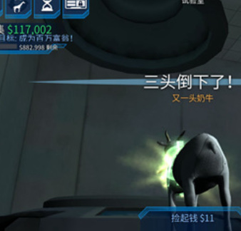 2、山羊模拟器太空废物游戏中玩家需要操控疯羊不断的募集资金,而很多npc的头顶上都有一个金钱的标志,玩家将他们顶撞之后就可以收集。