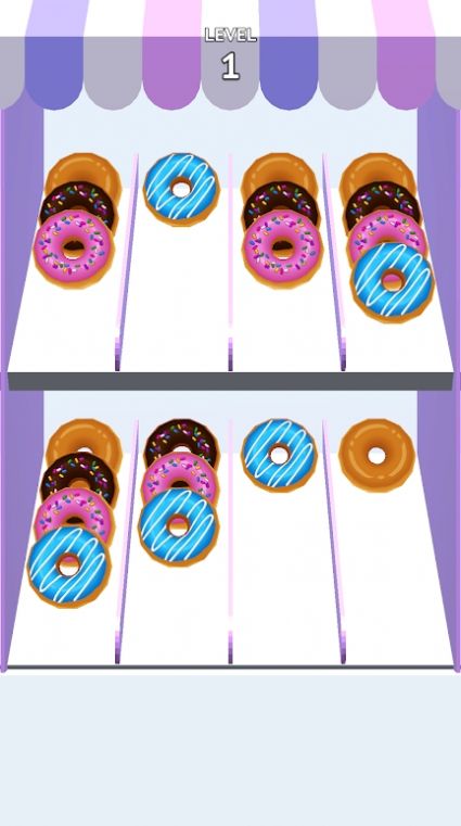 2、放置挑战模式,要合理安排每个彩色甜甜圈的位置,考验你的空间想象力。