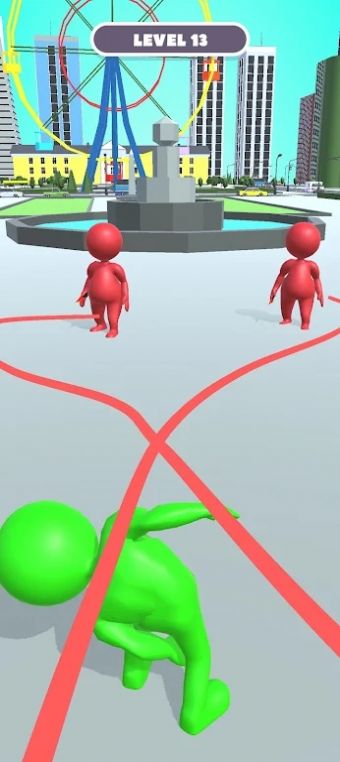 1、操控火柴人角色移动和瞄准,使用彩弹枪射击敌人,达成关卡目标以通关;