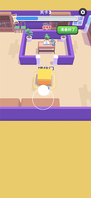 2、堵住门口,等待方框内的进度条到没有或者点击准备好了,不会的话可以点击右下角圆圈内的灯泡提示。