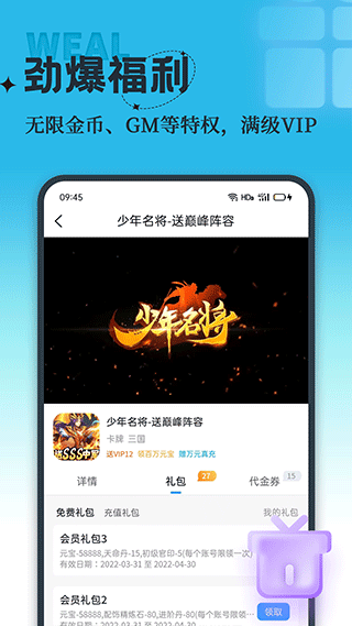 免费首充、手游礼包、海量礼包、代金券让你优人一级;