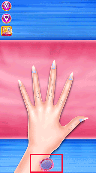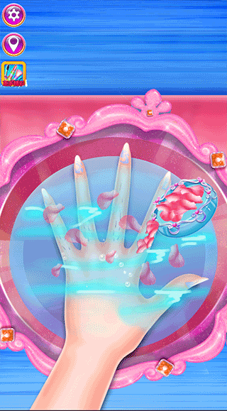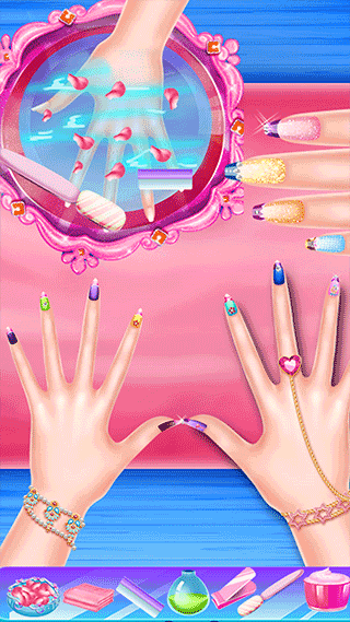 给她修指甲,每个指甲都可以用不同的颜色和配饰来设计。
