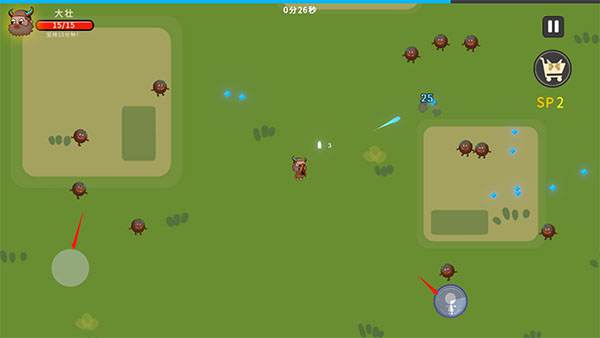 3、蓝色小点代表经验,升级以及购买技能时可使用。