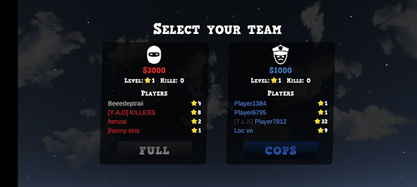 进入游戏,选择警察或者是强盗开始游戏,这里小编选择的是警察。