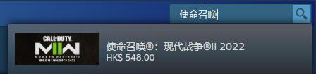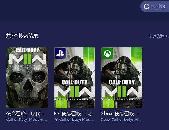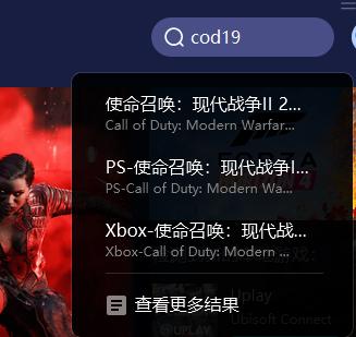 步骤2:在右上角的搜索栏中搜索使命召唤就会出现游戏