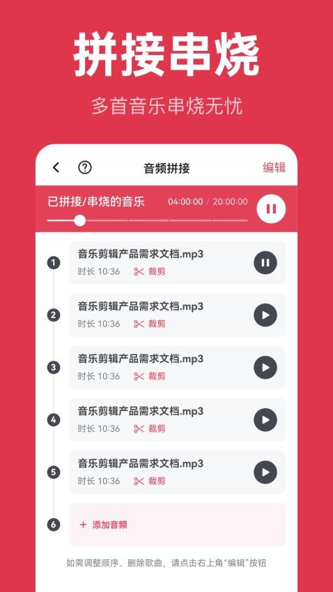 同时导入多个音频片段使用拼接功能拼接在一起生成精彩作品;