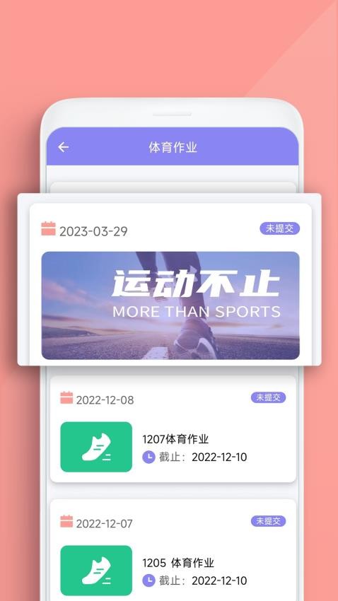 老师布置各种体育作业之后在体育作业界面中查看任务并提交;