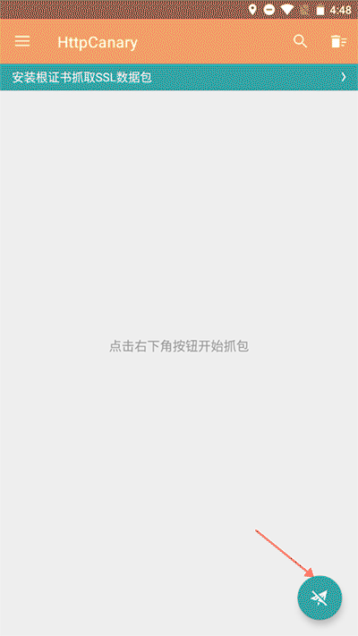 1、上述操作完之后就可以点击右下角纸飞机图标开始抓包了(弹出需要权限窗口时点击允许)。
